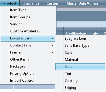 In this example, the user selected Product, Eyeglass Lens, and Color.