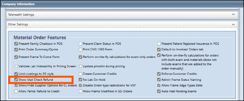 We've renamed the Hide Mail Check Refund check box in Company Information; it is now labeled Show Mail Check Refund.