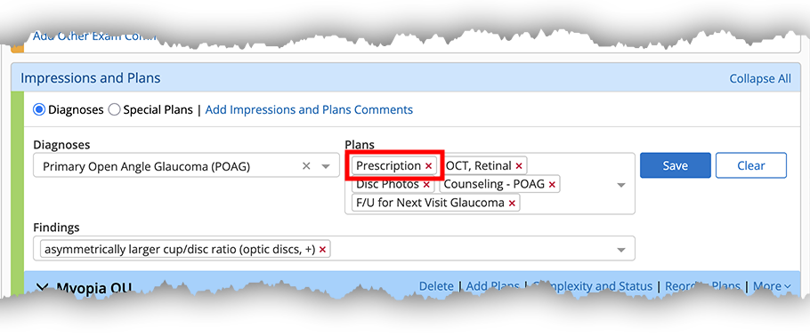 - Click the Save Visit Note action bar button to close the Ocular Exam page and return to the Visit Overview.