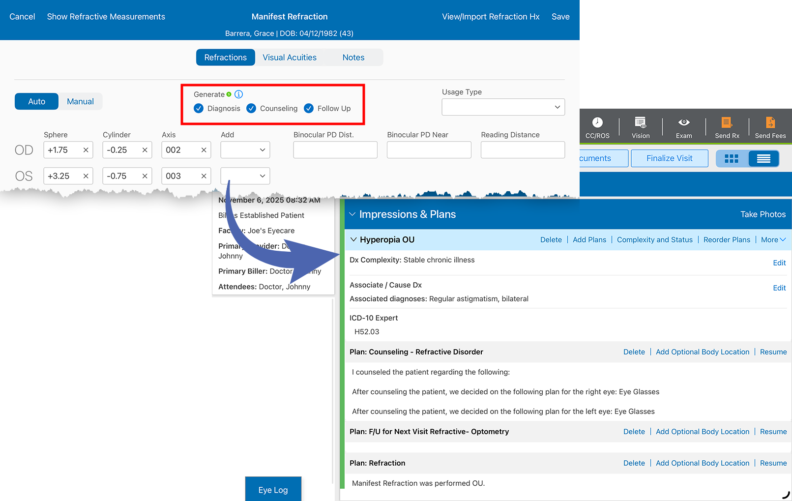 - Save Time with Automatic Refractive Counseling and Follow-Up Plans