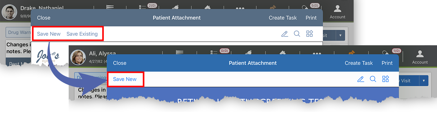 - We removed the Save Existing option from any final PDF in the Patient Attachments. You can still tap Save New when annotating PDFs to save an updated version. We made this change so you can compare different versions of attachments and keep a record of updates.