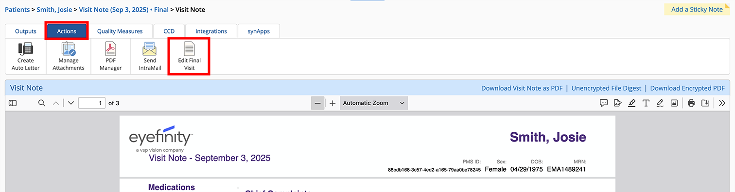 If your practice administrator enables this feature, doctors can now unfinalize visits. This feature is one of the most frequently requested by our users, and we're thrilled to deliver it. You have multiple ways of editing a finalized visit: