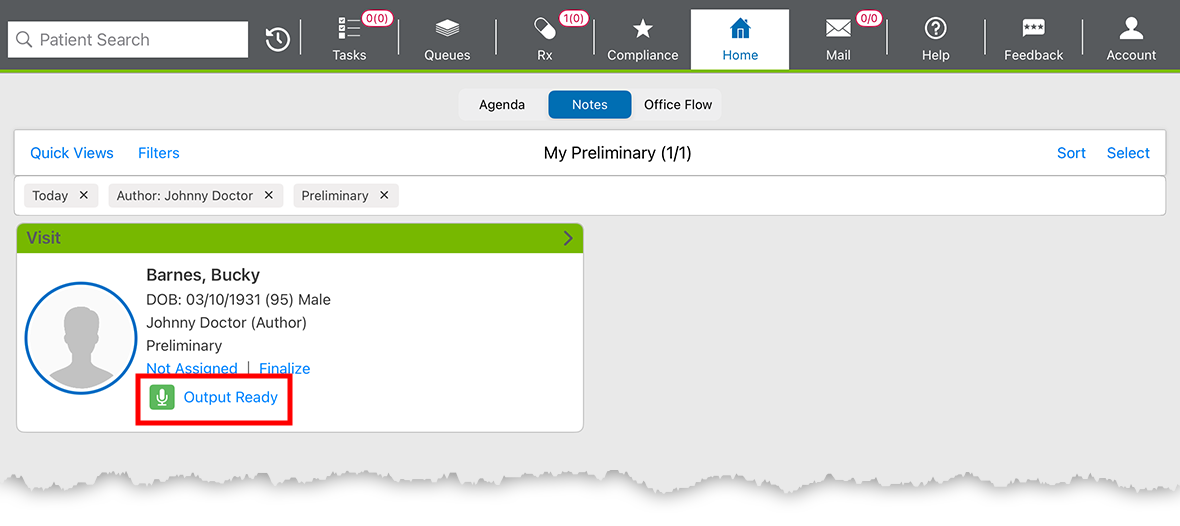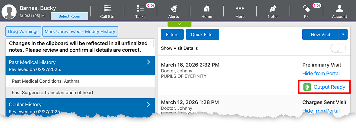 After you save the visit recording, EncompassScribe converts the spoken words into suggested visit documentation. As the doctor, you must review and approve the suggested documentation before it is saved to the visit. You can review the suggested documentation after each visit or at the end of the day, whichever fits your workflow.