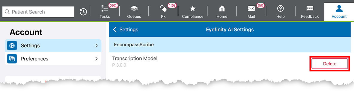 - Tap Delete to remove the EncompassScribe model and tap Delete again to confirm.