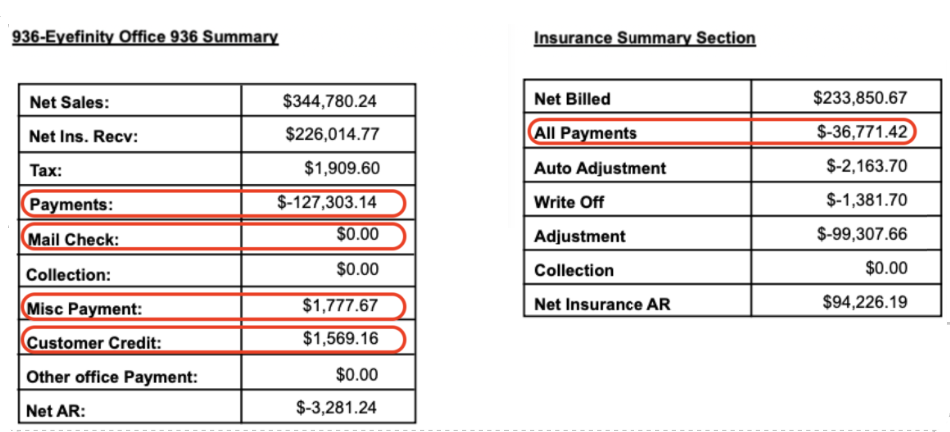 Production Summary is based on where the payment was collected. Therefore, the individual location payment amounts may not match.