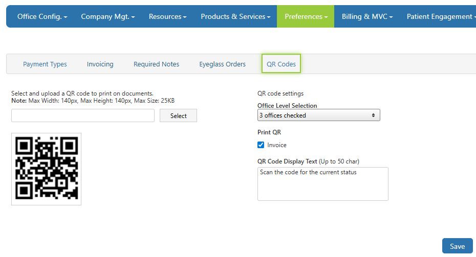 To save your changes, click Save. The QR Code will now print on the receipt for the offices selected.