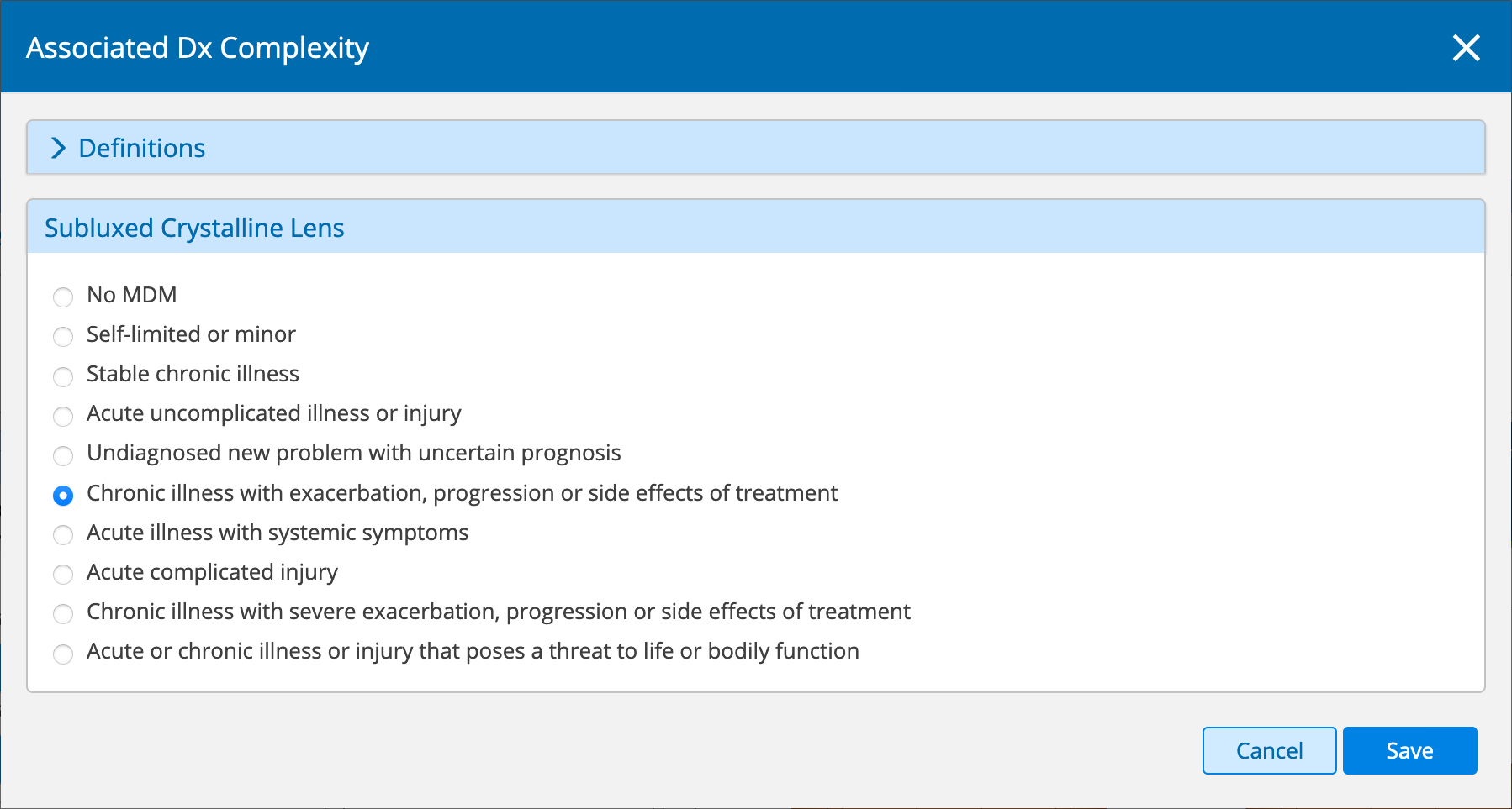 If you're unsure about which level of complexity to choose, tap the Definitions link to display the AMA description of each level.