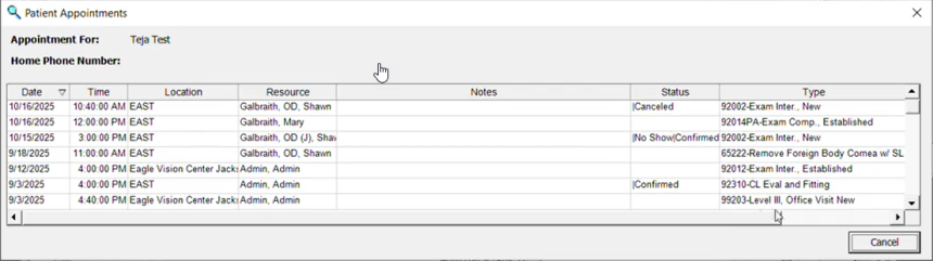 - We added a 'Type' column to the Find Appt selection in Demographics to save you time when reviewing upcoming appointments. Previously, you had to navigate to the Scheduler to view information regarding appointment type.