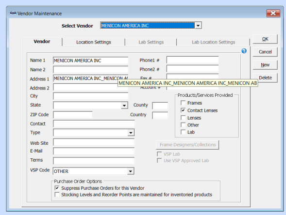 - In Admin, we added a tool tip to the Vendor Address field that displays the complete address when you hover over it.