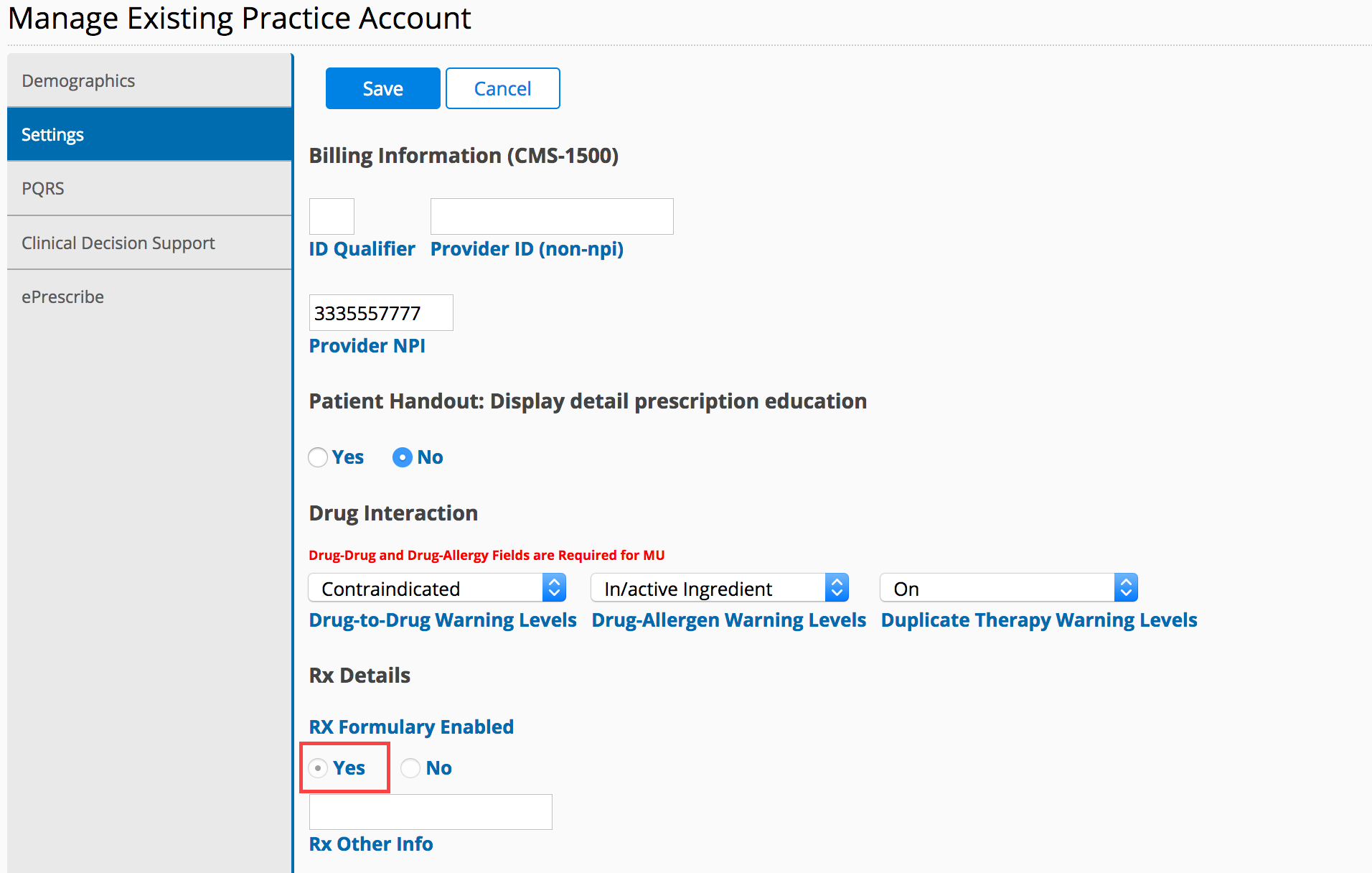 - Ensure Check Rx Formulary is set to Yes.