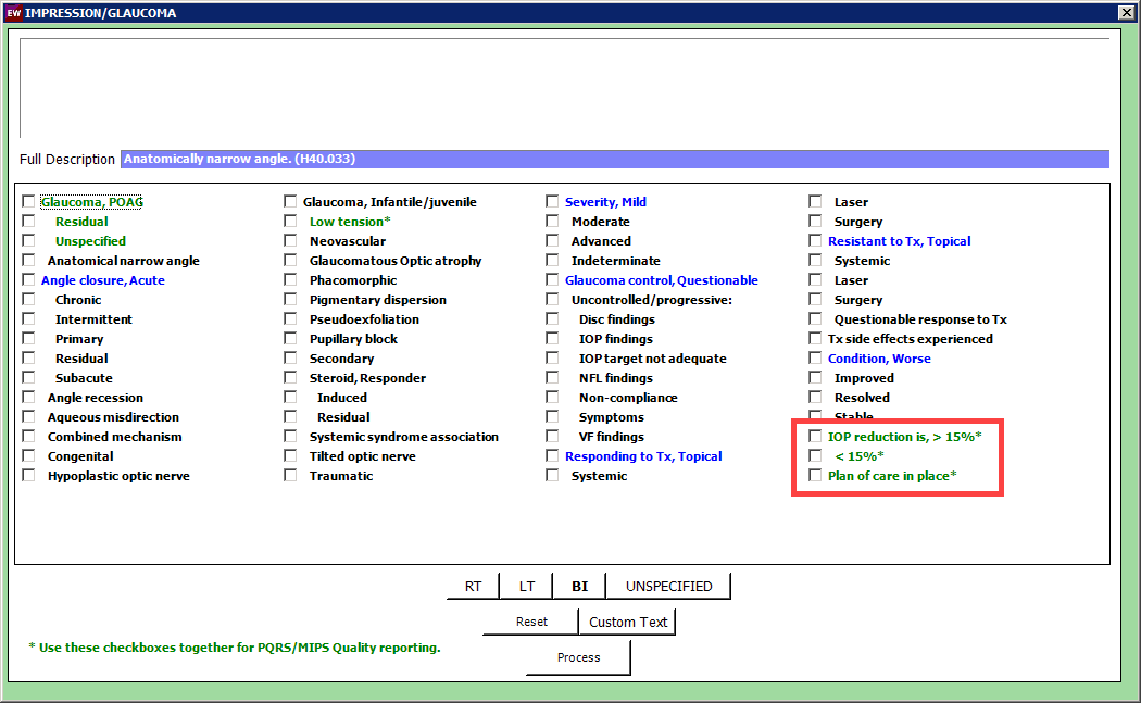 This measure is to be reported a minimum of once per performance period for glaucoma patients seen during the performance reporting. It is anticipated that eligible clinicians who provide the primary management of patients with POAG will submit this measure.