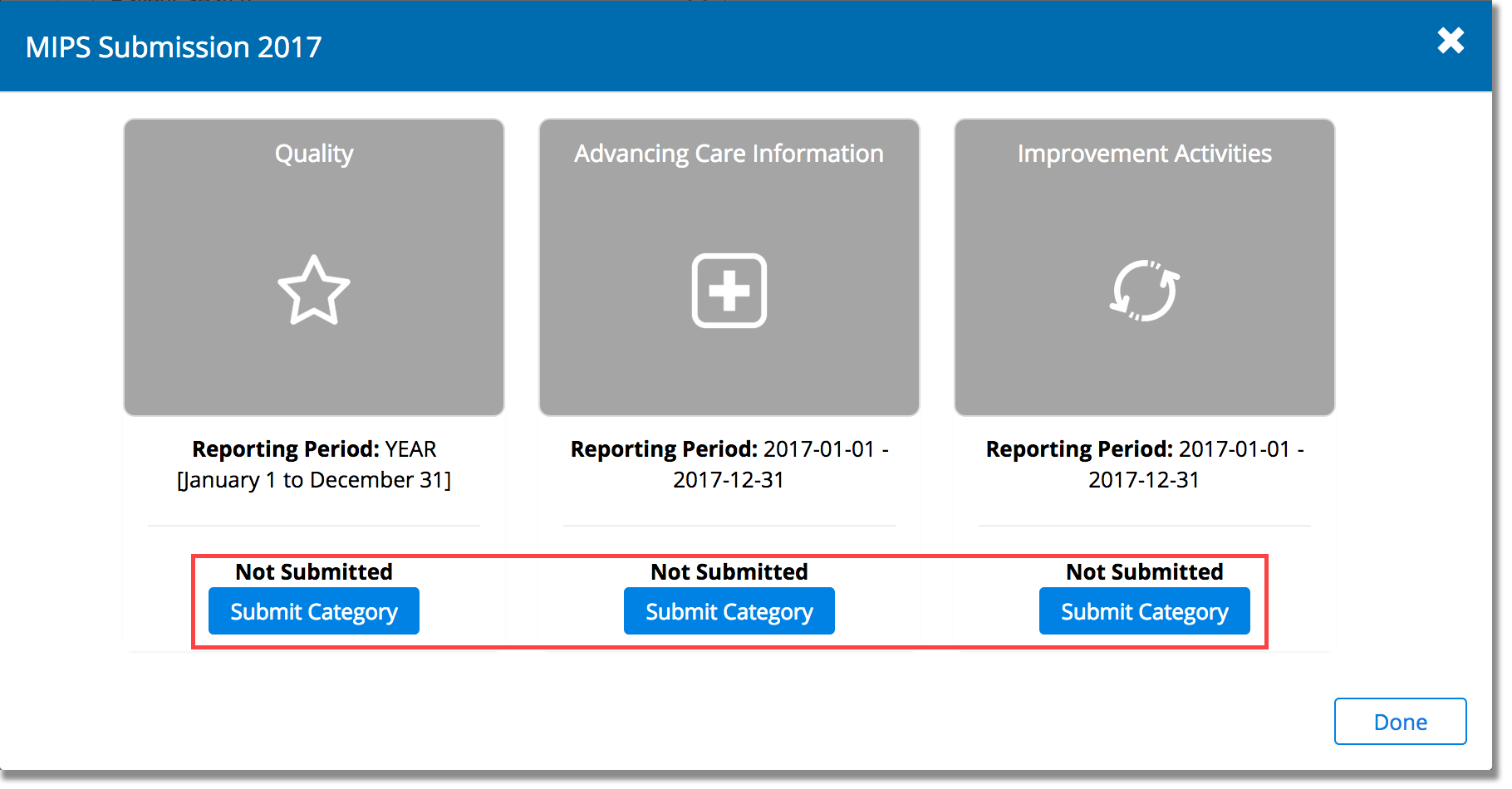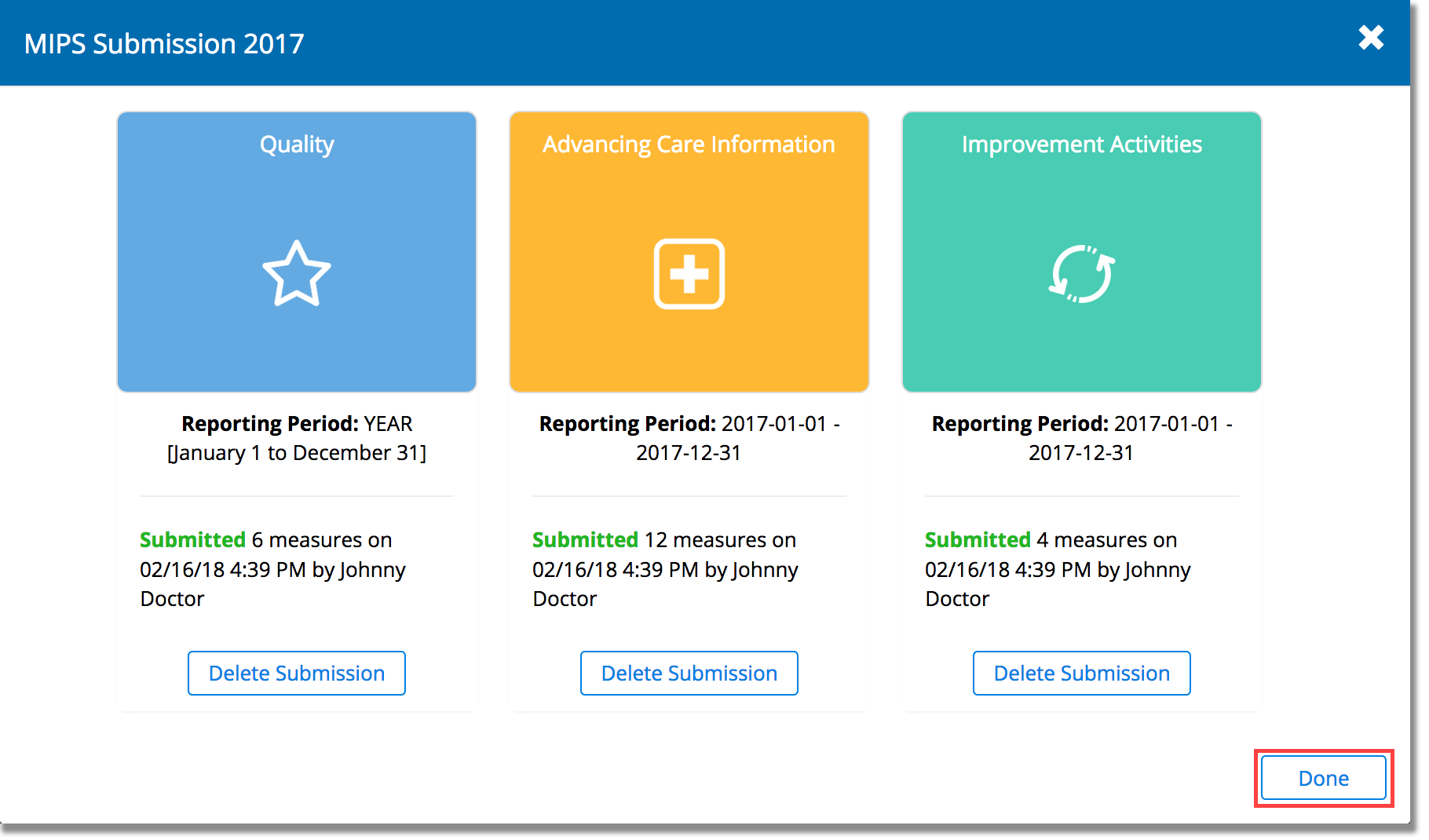 - Click Done to complete your MIPS submission.