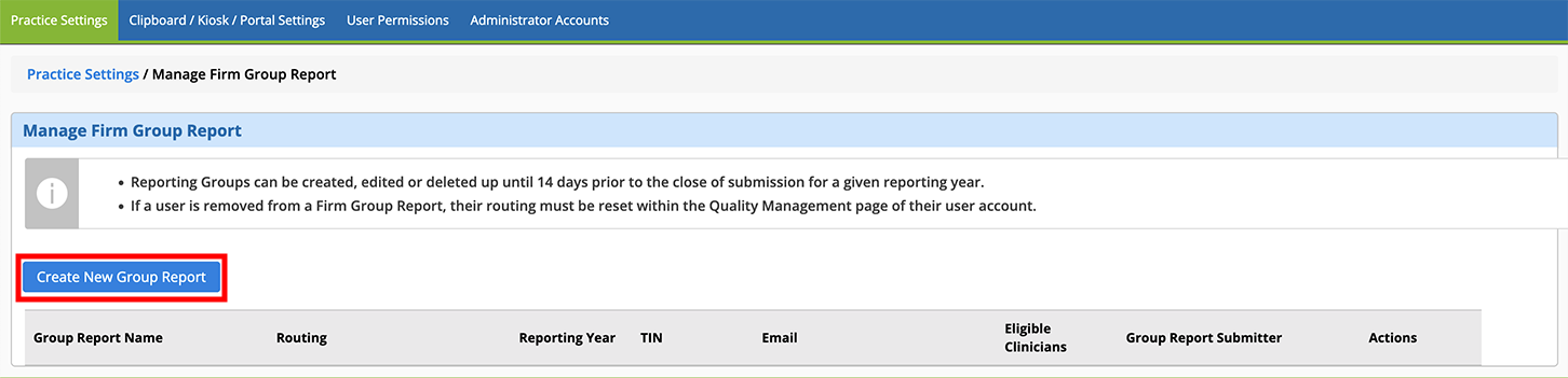 - Click the Create New Group Report button.
