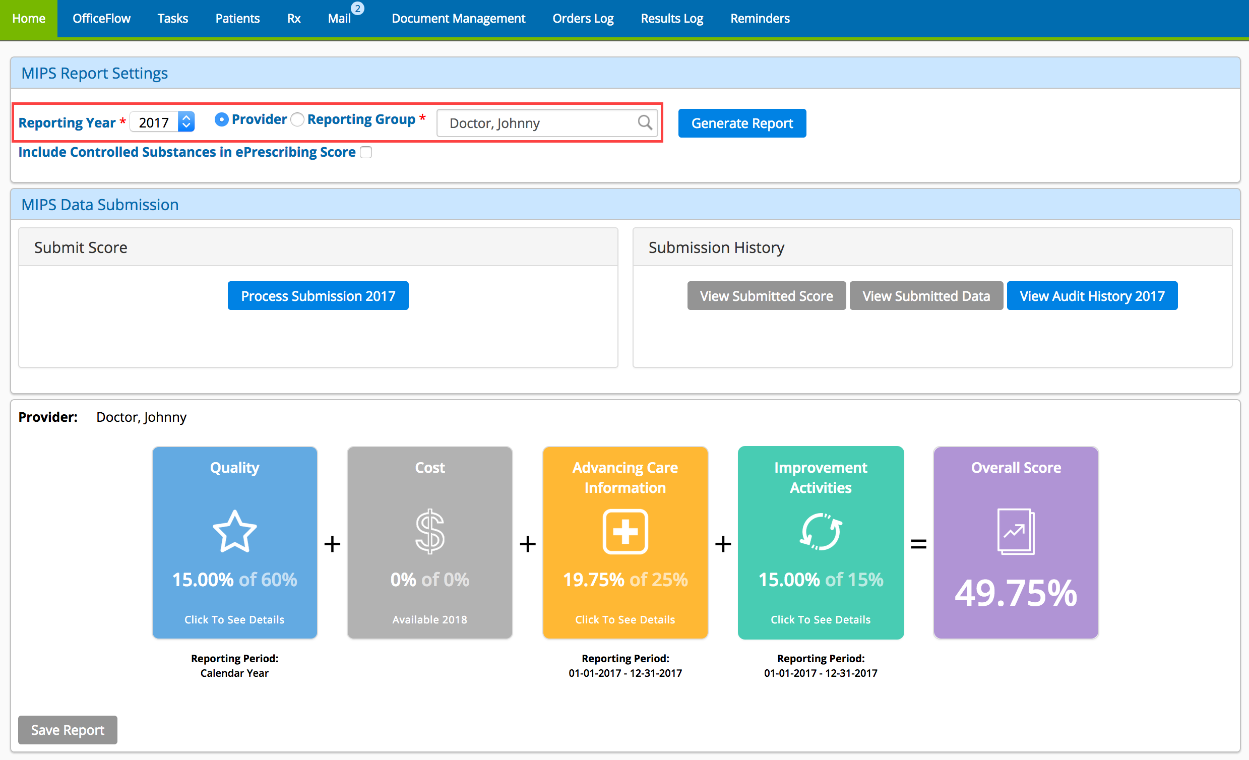 - Hover your cursor over the Regulatory Reporting drop-down and click MIPS Overview.